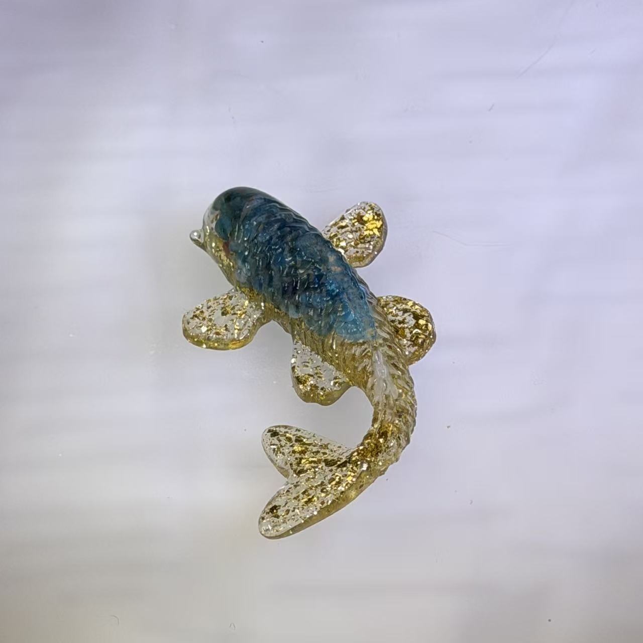 Blue Apatite Resin Koi Fish Figurine 蓝磷灰滴胶锦鲤摆件