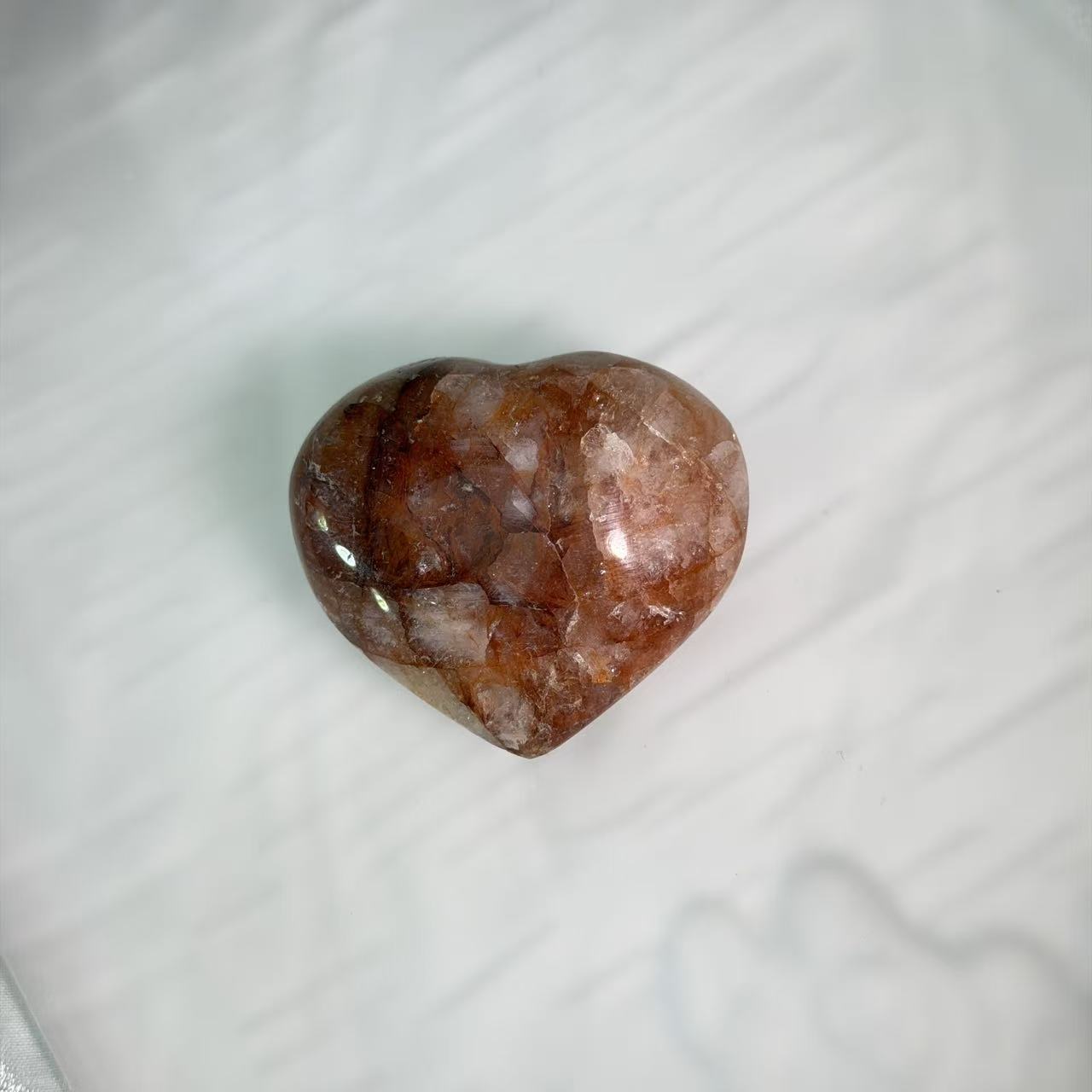 Red hematoid quartz, also known as "fire quartz," is a powerful combination that brings balance to the mind, body, and spirit. It combines the amplifying properties of quartz with the strong, grounding energy of iron minerals. It is believed to significantly enhance vitality, physical energy, and boost self-worth and confidence, helping to dissolve obstacles and overcome procrastination. It can help calm worries or fears, promoting focus, concentration, and practical thinking. The heart shape symbolizes unconditional love, compassion, and emotional healing, making it an ideal talisman for fostering harmonious relationships and attracting love. This unique piece embodies love, confidence, and protection.