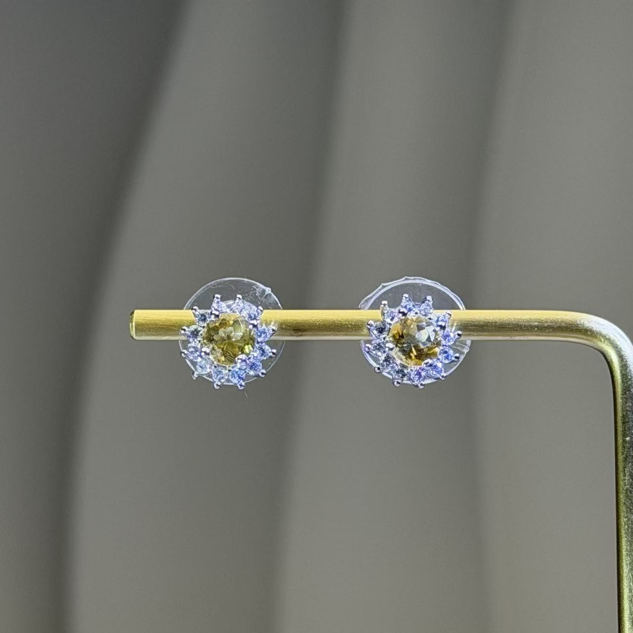 黄水晶镶嵌银耳钉