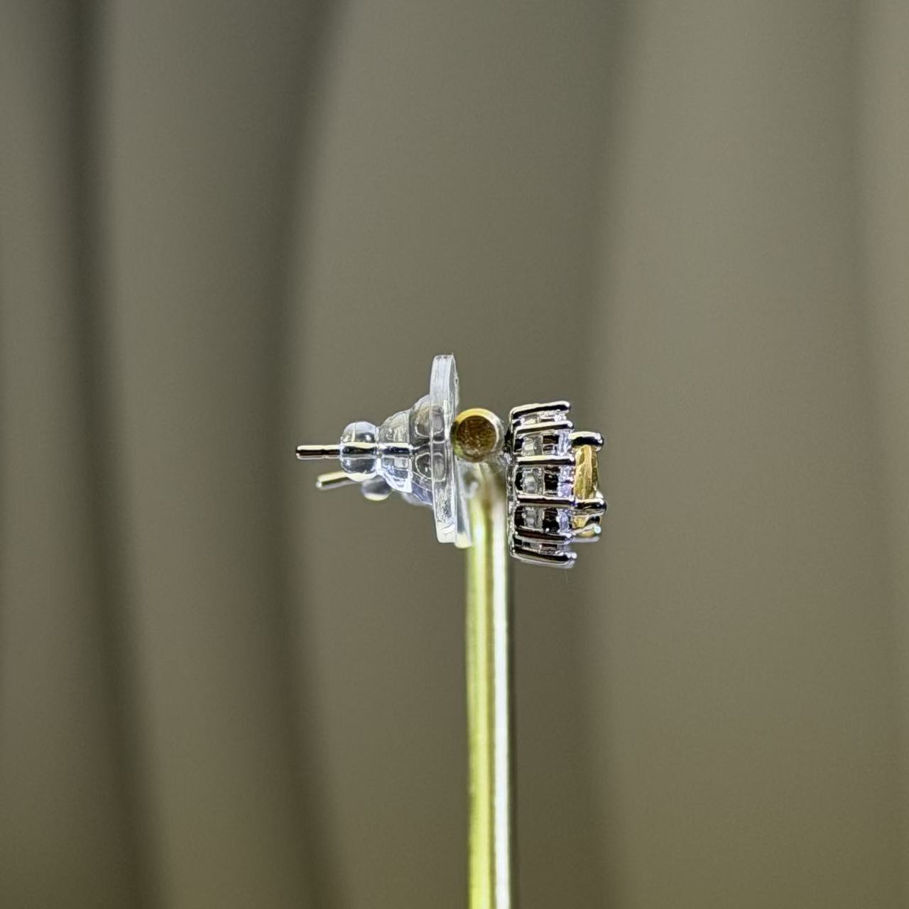这款银耳钉以高品质黄水晶切面为主石,周围点缀一圈闪耀锆石,整体视觉明亮而精致。黄水晶晶体通透、色泽温润,呈现出自然柔和的金黄色光感,在小巧耳钉造型中依然十分吸睛。设计简洁大方,既能突出宝石本身的光泽,又不会显得张扬,适合日常佩戴,也能轻松搭配通勤或稍正式的穿搭。环绕的锆石为整体增添层次感与精致度,使耳钉看起来更加平衡耐看。