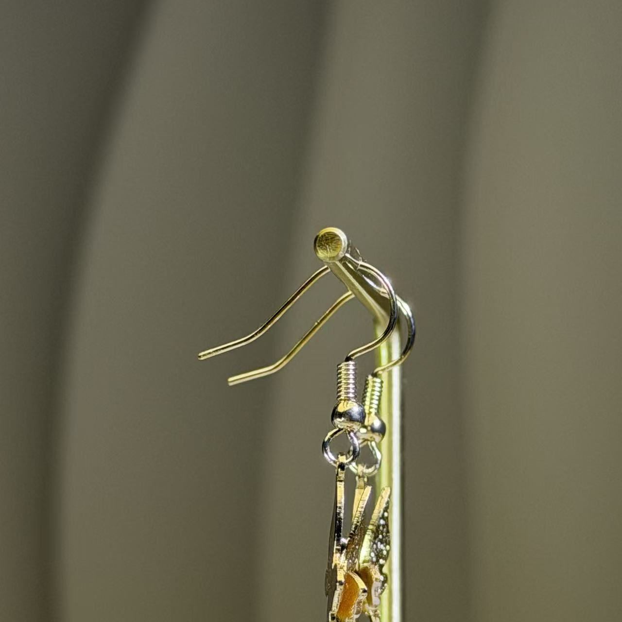 These drop earrings feature a cream nephrite off centre donut as the visual focus, paired with a delicate golden butterfly accent. The jade displays a soft, creamy tone with a smooth, lustrous texture, creating a gentle and refined appearance. The elongated drop design enhances elegance and movement, expressing a graceful and feminine charm.