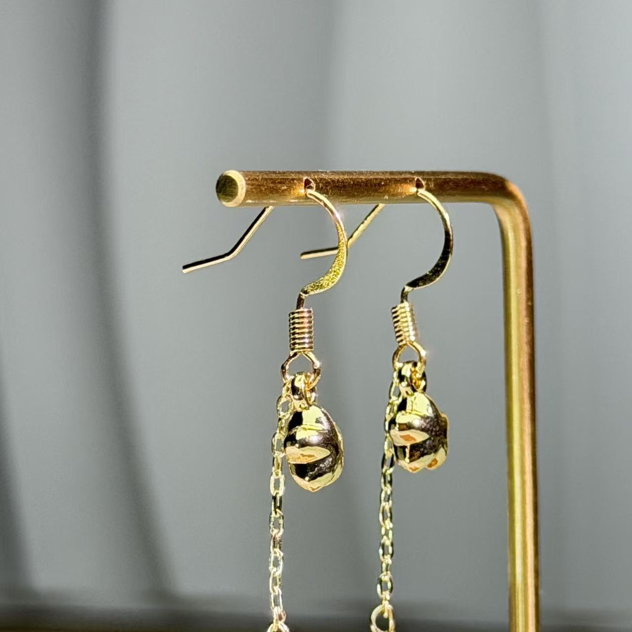 这对耳坠饰有精致的金色调星星图案,由富有光泽的14K注金金属制成。下方悬挂一颗天然绿色葡萄石圆珠,采用简约的镶嵌设计,增强了其清爽、半透明的绿色魅力,让人联想到新鲜的青葡萄。充满活力的绿色、璀璨的金色调和迷人的设计相结合,营造出迷人的美感,既现代又优雅。这款引人注目的作品,可以轻松驾驭办公室通勤、精致晚宴和周末休闲等多种场合,同时也非常适合作为赠送亲友的一份贴心礼物。