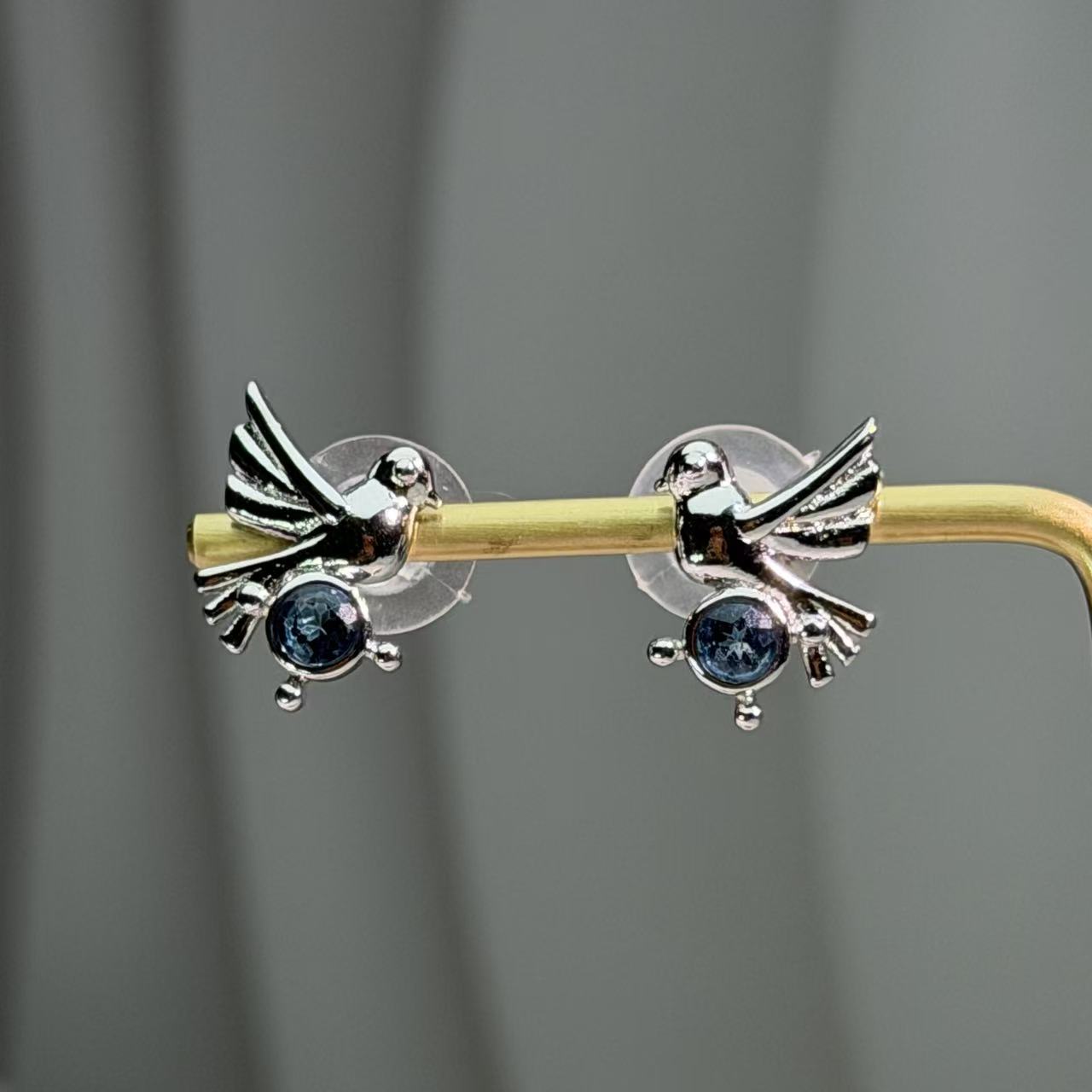 This charming pair of bird stud earrings features a delicate silver-toned bird motif crafted from lustrous alloy. Each bird holds a faceted London blue topaz stone in its claws, designed to catch the light and showcase the gemstone's natural allure. The intricate detailing on the wings and body enhances the design's playful aesthetic, creating a captivating look that is both modern and elegant. This eye-catching accessory is highly versatile, effortlessly transitioning from professional office wear and sophisticated evening events to weekend casual ensembles, and also serves as a perfect thoughtful gift.