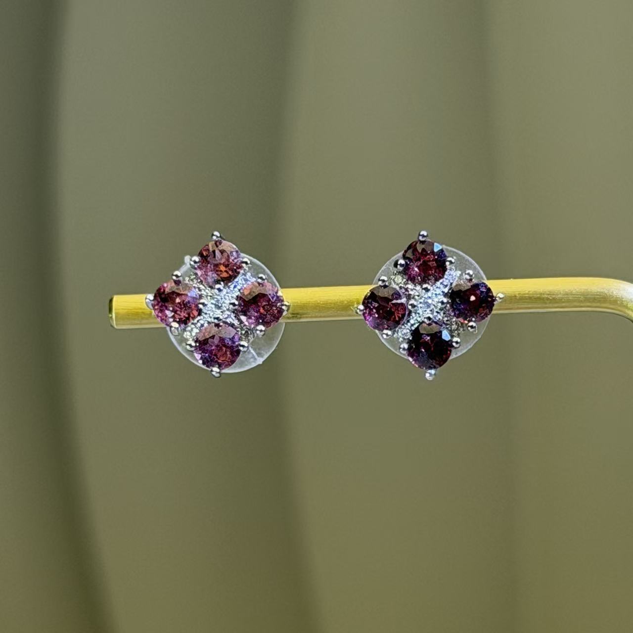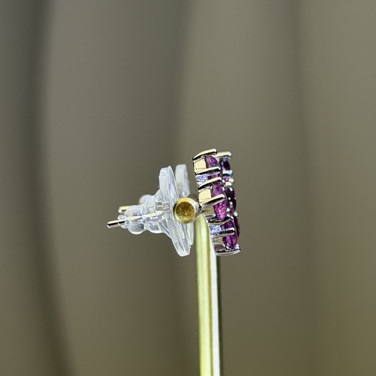 紫牙乌石榴石菱形星芒耳钉