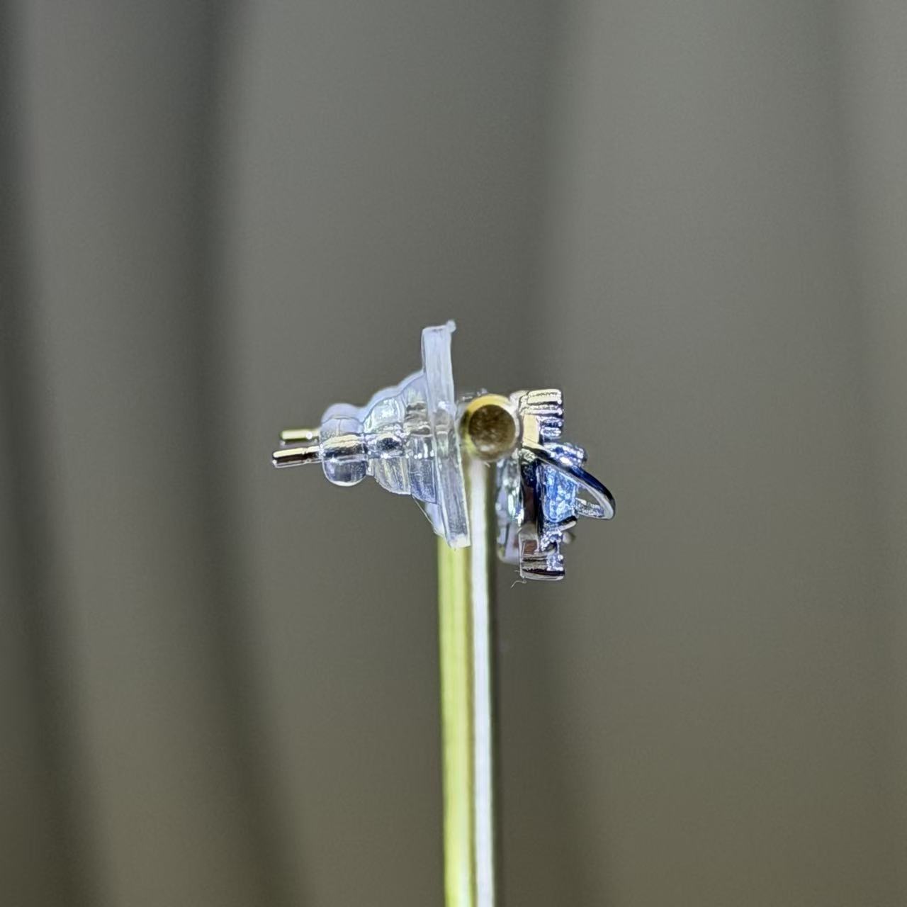 这款银耳钉以瑞士蓝托帕石切面为主石,设计成迷你星球造型,周围点缀闪亮锆石,蓝色晶体光彩明亮,切面折射出动感光泽,凸显星球趣味元素。锆石的点缀优雅衬托主石,让整体造型既俏皮又精致,小巧耳钉适合日常佩戴,也可为造型增添一抹宇宙感。
