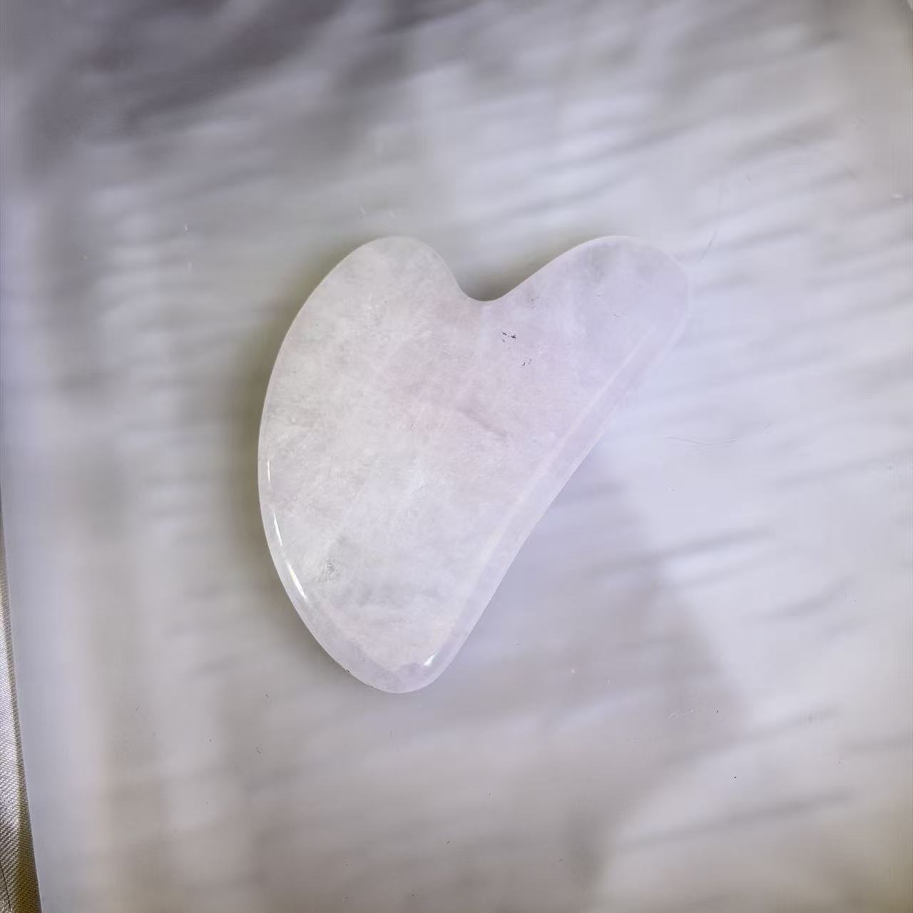 Rose quartz is traditionally associated with love, emotional healing, and inner harmony. It helps promote self-love, compassion, and emotional balance while easing stress, calming the mind, and supporting forgiveness, empathy, and self-reflection. The gua sha board itself stimulates blood and lymphatic circulation, relieves muscle tension, reduces puffiness, and promotes relaxation. Combining the energetic properties of rose quartz with the physical benefits of the gua sha technique, this board can rejuvenate the complexion, restore inner calm, release tension, and enhance overall well-being, making it ideal for daily self-care, facial and body massage, relaxation, stress relief, or as a meaningful gift symbolizing love, emotional balance, and holistic health.