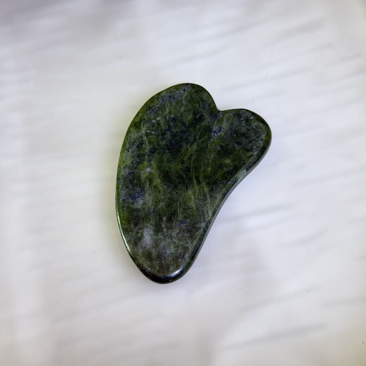 This gua sha board is crafted from natural serpentine, polished to a smooth finish for gentle yet effective massage on the face and body. Its ergonomic design fits comfortably in the hand, allowing precise contouring along facial lines and body curves. Each board features unique natural patterns, making it both functional and aesthetically appealing.