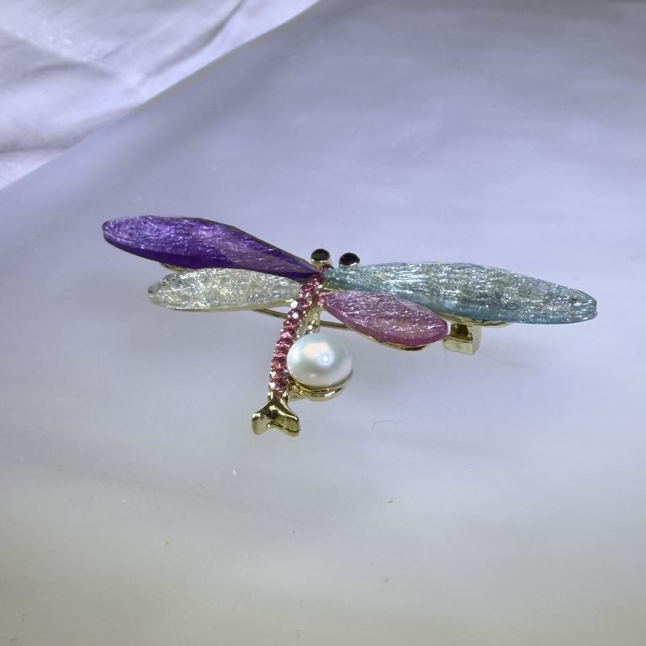 This exquisite brooch highlights a luminous white freshwater pearl as the centerpiece, complemented by a colorful dragonfly motif and sparkling CZ stones. The pearl’s radiant glow draws the eye, adding soft elegance and refined charm, while the vibrant dragonfly adds a playful, whimsical touch. The combination creates a striking accessory that enhances any outfit with sophistication and personality, perfect for everyday wear or making a captivating statement on special occasions.