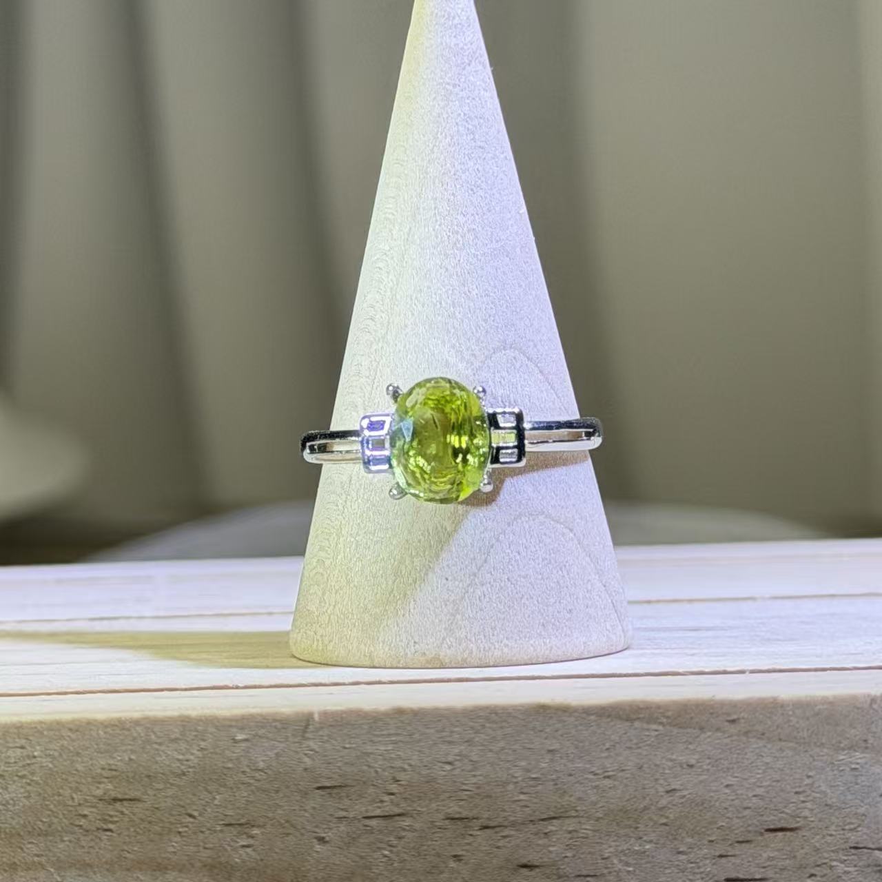 橄榄石镶嵌活口戒指