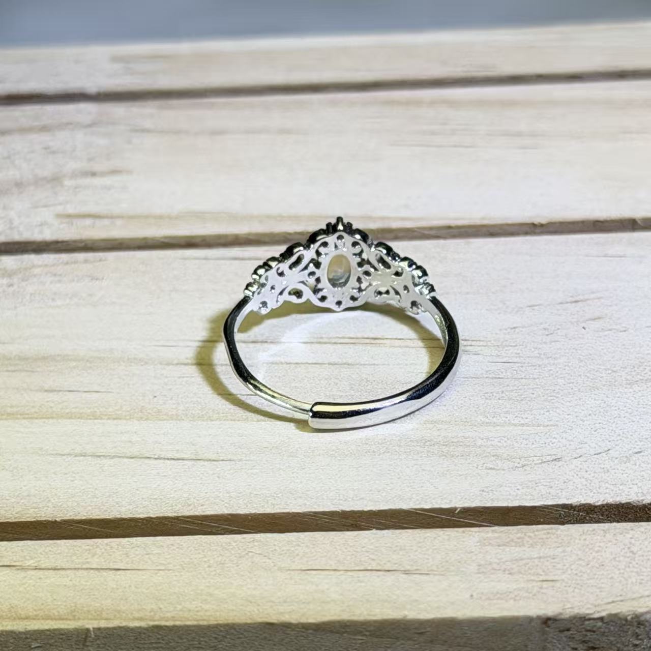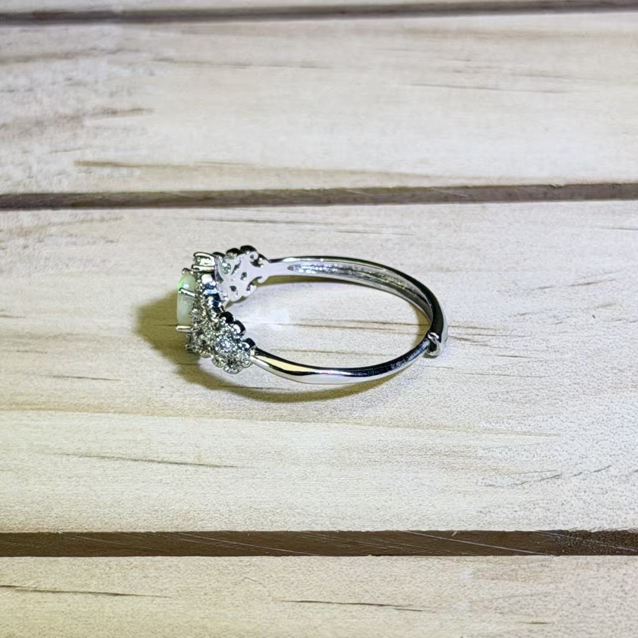 白色欧泊镶嵌活口戒指